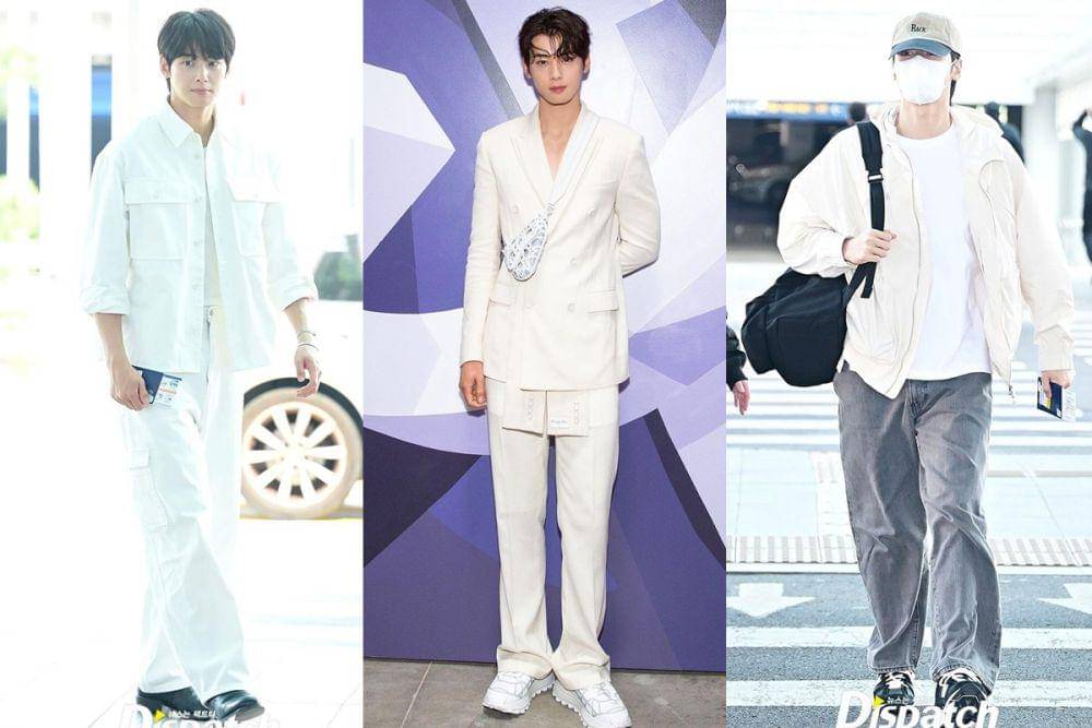 Gaya busana dengan atasan bernuansa putih juga kerap menjadi andalan selebritas ternama Korea Selatan, Cha Eun Woo. Melalui akun Instagram pribadinya, aktor sekaligus idola KPop multitalenta tersebut kerap menampilkan potret OOTD fashionable, termasuk padu padan outfit dengan atasan bernuansa putih.