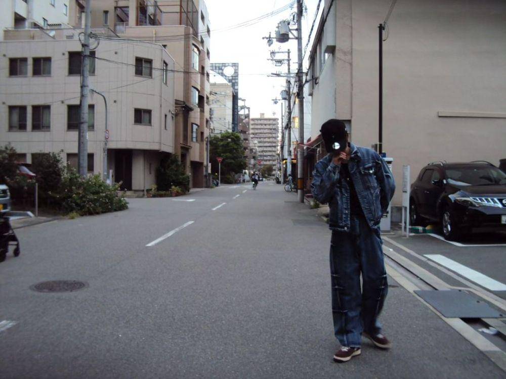 8. Kali ini, Seungmin memadukan trucker denim jacket dengan inner kaus hitam, oversized cargo jeans, dad hat dan sneakers
